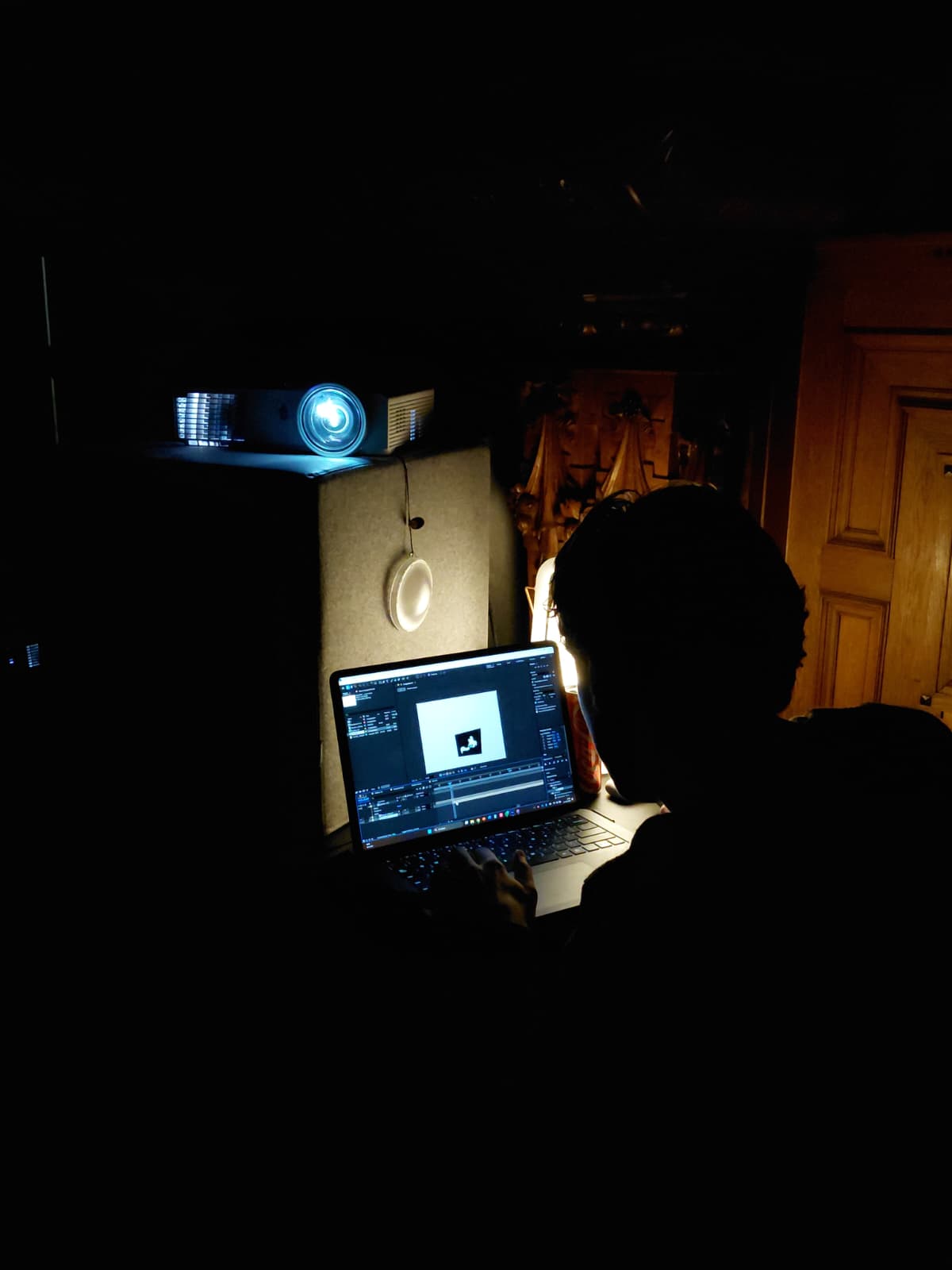 Het projection mapping-proces hebben we uitgewerkt in Adobe After Effects. Dit was een uitdaging, omdat het voor ons allemaal de eerste keer was dat we met dit programma werkten. Hierdoor nam ik vooral het technische gedeelte van de projection mapping op mij. Eén medestudent richtte zich op de projectoren en hun positionering, terwijl de ander de videobeelden maakte die de wandtapijten tot leven lieten komen.
