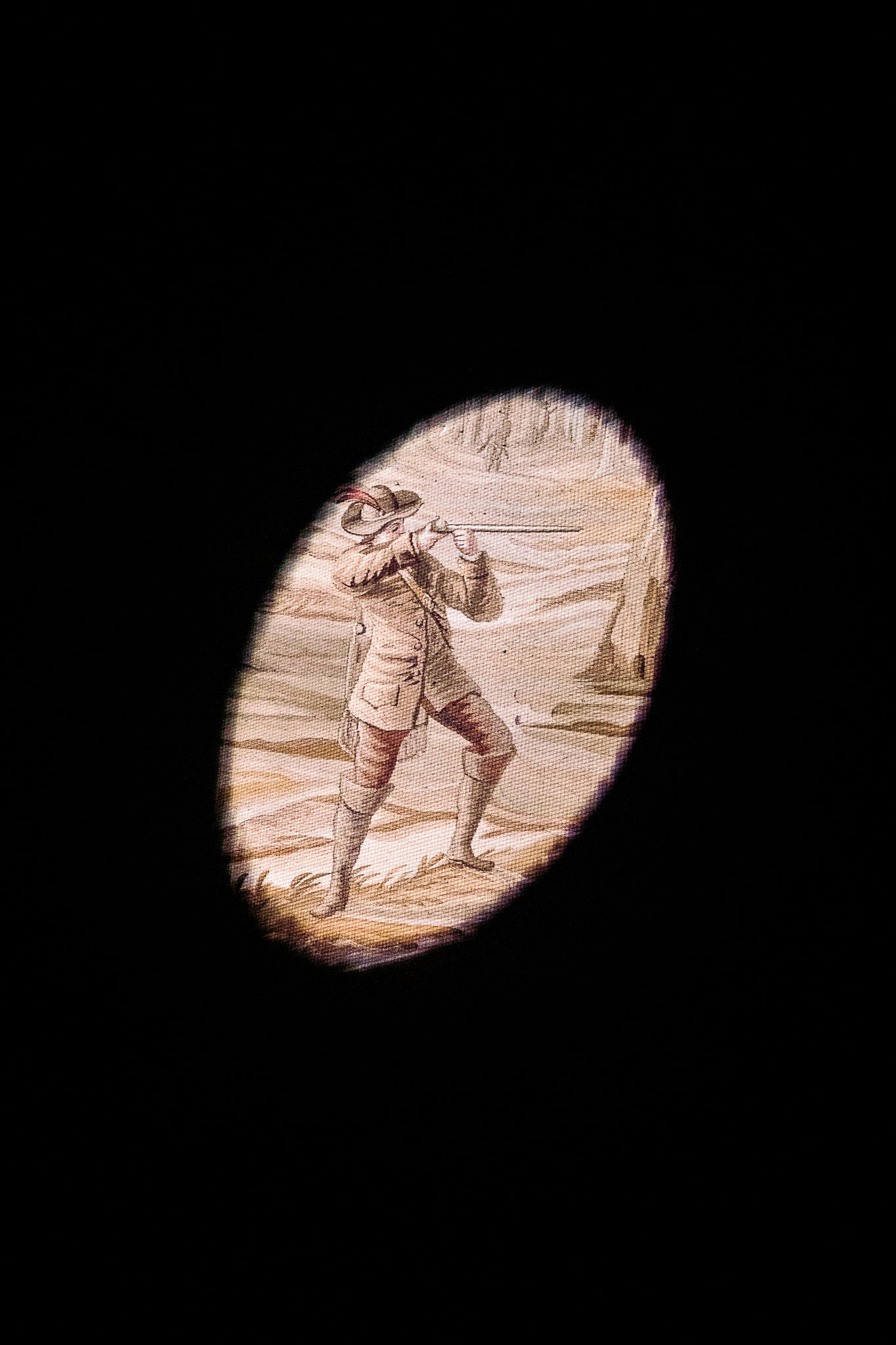 Voor deze opdracht moesten ik en twee medestudenten als groep een kamer kiezen binnen het kasteel waar wij onze lichtsequentie wilden realiseren. Wij kozen voor de jachtkamer, voornamelijk vanwege de prachtige wandtapijten die in de ruimte hangen. Deze tapijten vormden vervolgens het centrale element van onze lichtsequentie.